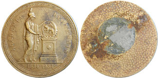 Die Medaillen mit Henkel bestehen aus versilbertem Weissmetall, die ohne Henkel aus versilberter Bronze.