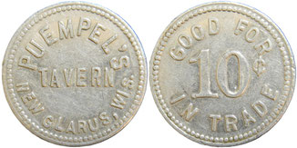 Nominal: 10 Cents in Trade Puempel's Tavern New Glarus Wis.